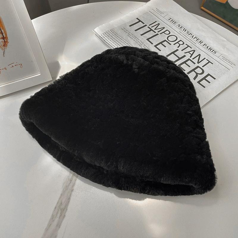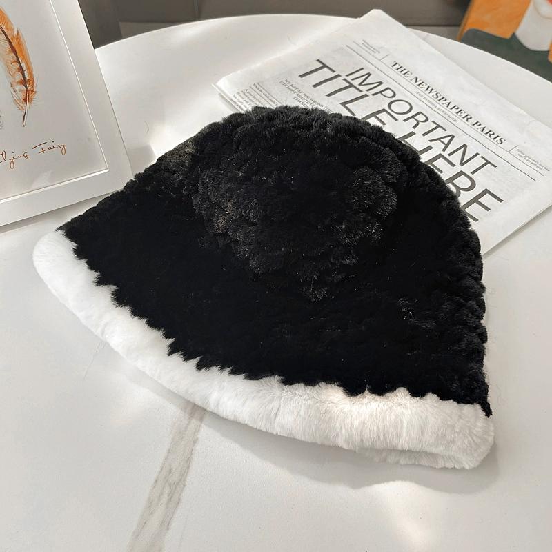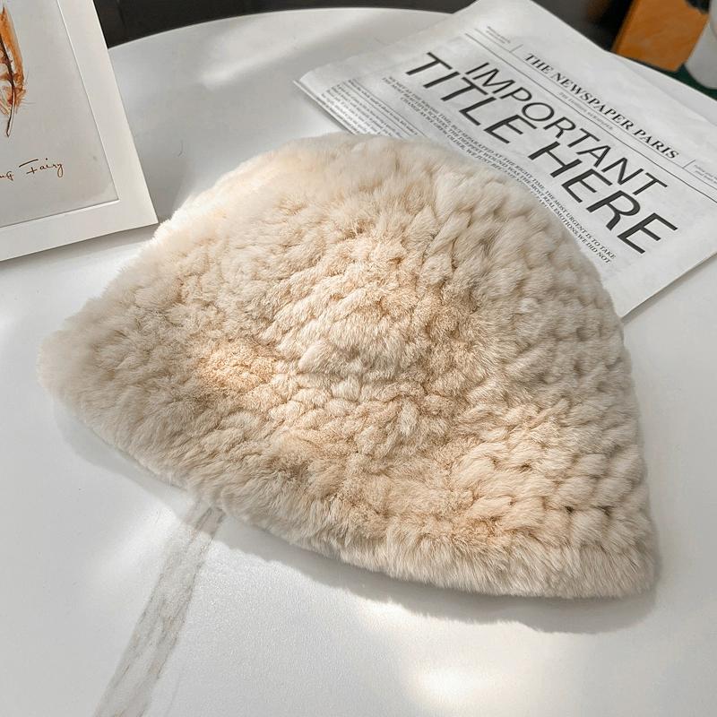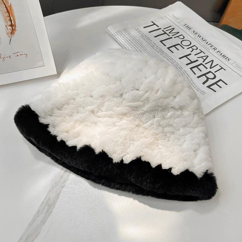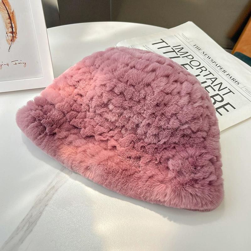 Осень и Зима Новая Шляпа-цилиндр из Кролика Рекс Женская Повседневная Универсальная Маленькая Ароматная Меховая Шляпа Теплая Шляпа-ведро Подчеркивает Маленькое Лицо