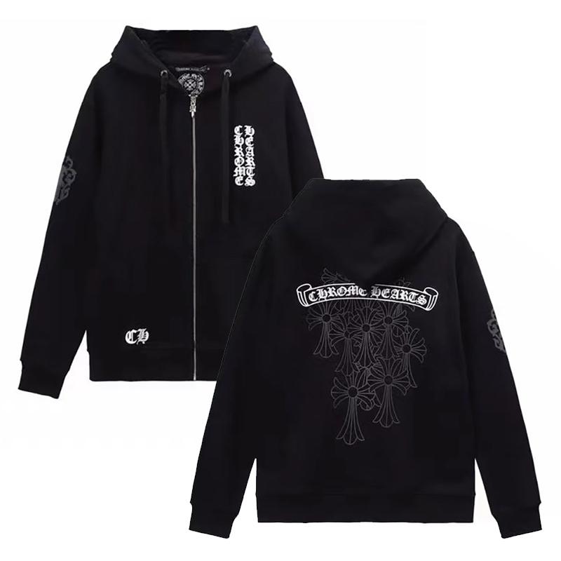 835 CHROME HEARTS Осень-Зима 2025 Новая Модель Большого Размера Классический Стиль Логотип Толстовка с Капюшоном на Молнии, Подходит для Парной Носки