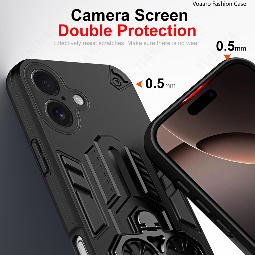 Двойное кольцо-броня для пальцев для чехла iPhone 17 для iPhone 17 Вращающийся металлический кронштейн Подставка Держатель Чехол Ударопрочный Полный Capa