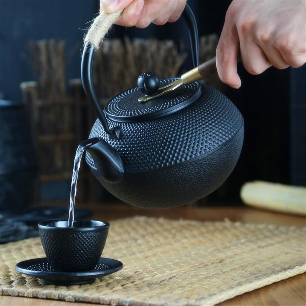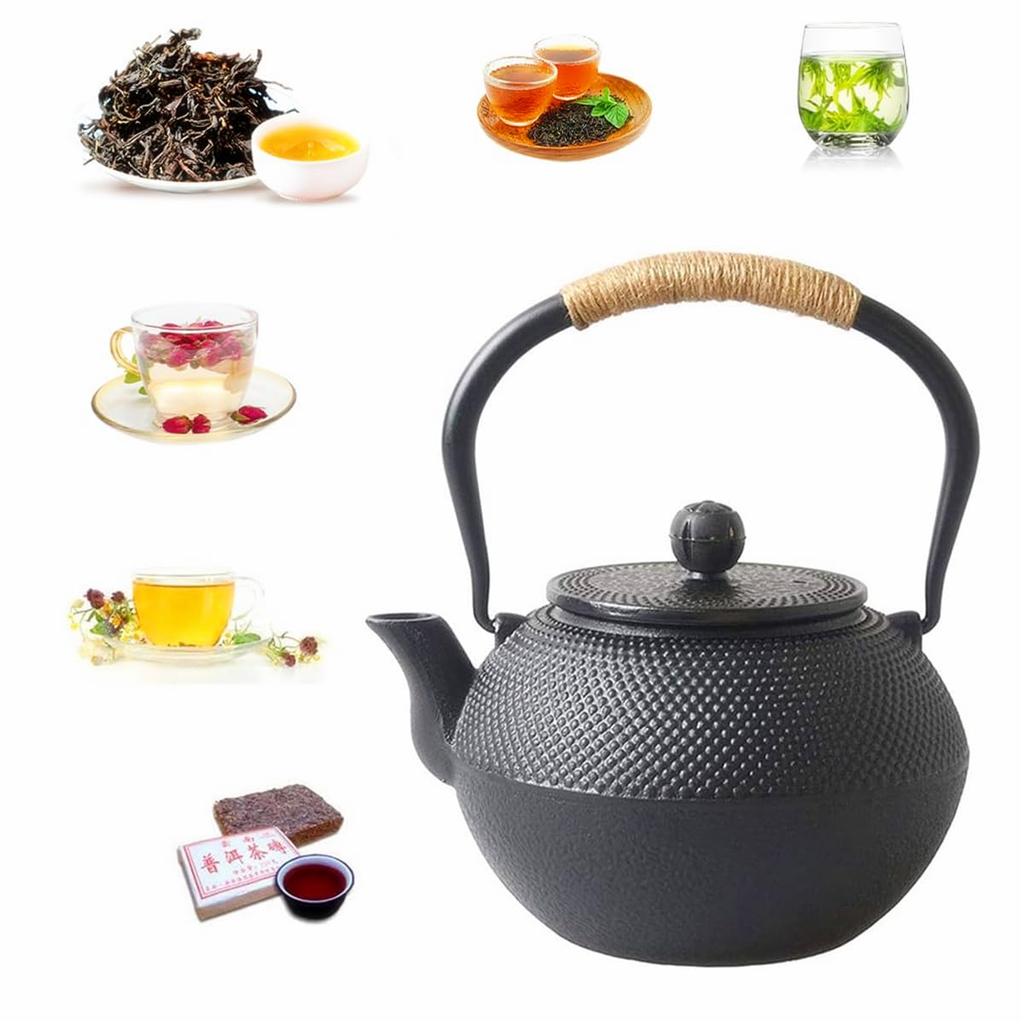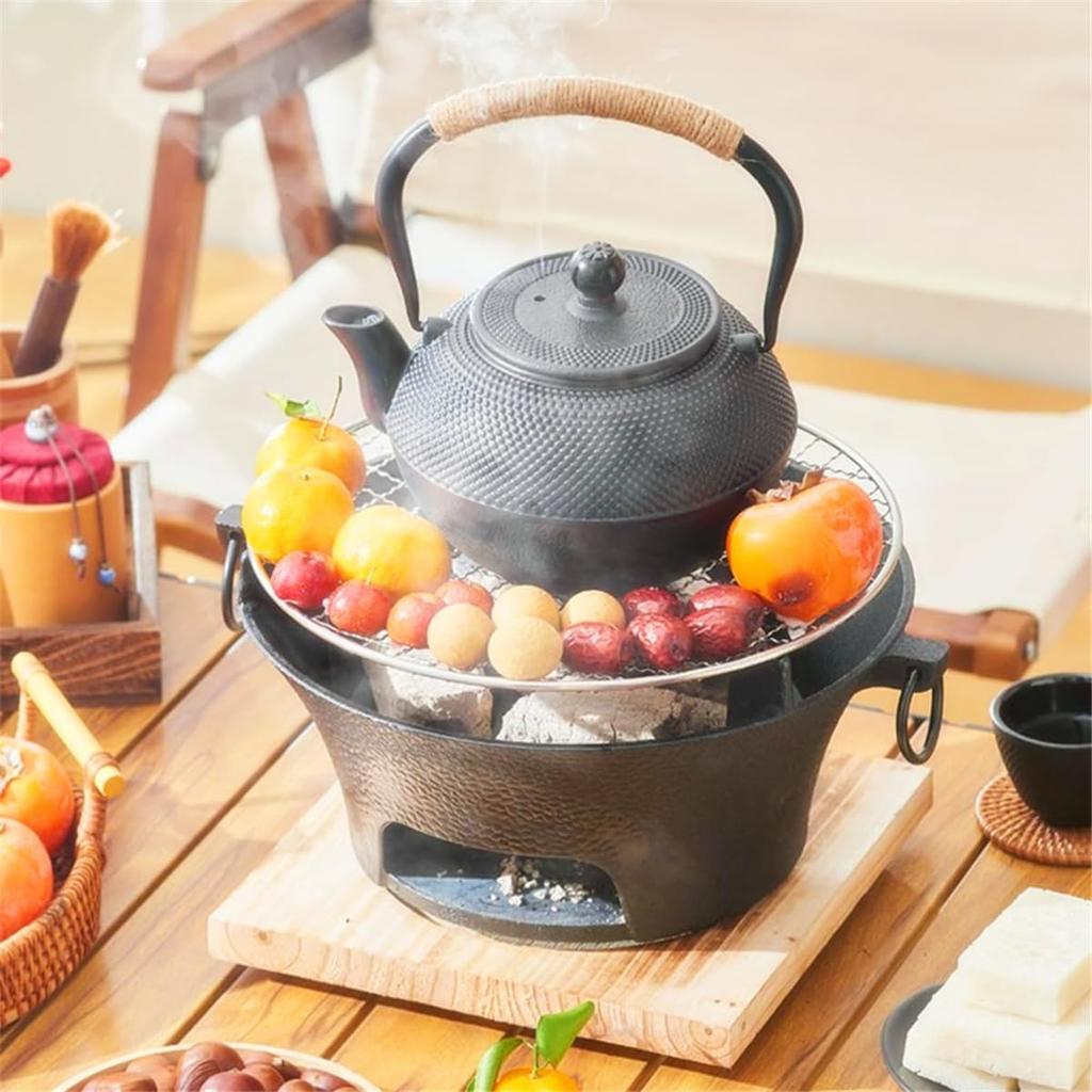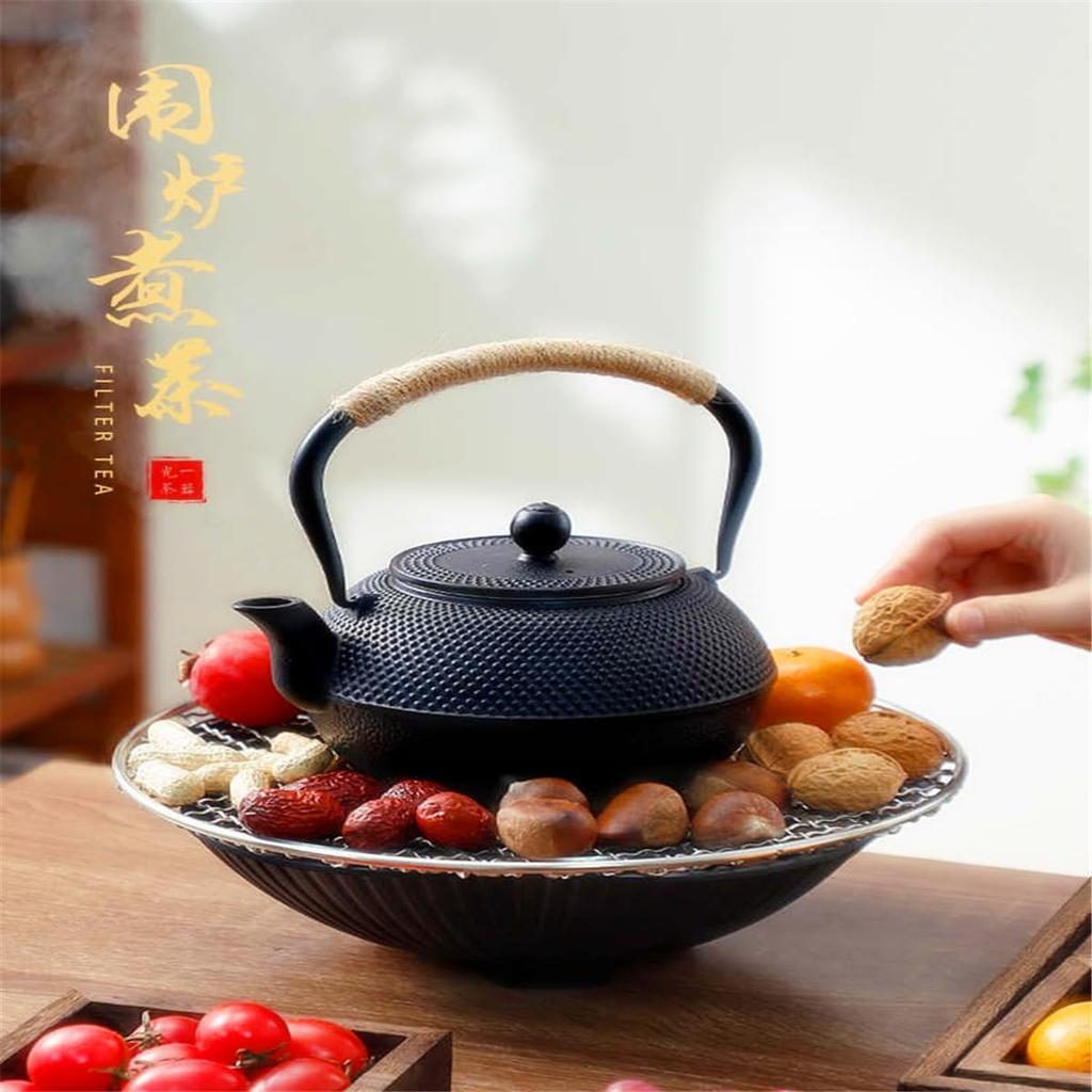 Чугунный чайник для кипячения чая над открытым очагом, совместимый с прямым нагревом и индукцией, включает ситечко для чая, источник железа и