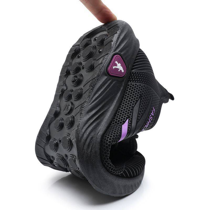 Противоударный и водостойкий носок: Конструкция с круглым носком делает обувь противоударной. Черно-белый носок занимает небольшую площадь, поэтому вся обувь не будет выглядеть громоздкой. Носок изготовлен из водостойкой резины, что позволяет избежать дискомфорта в пальцах ног, вызванного попаданием в обувь грязной воды.