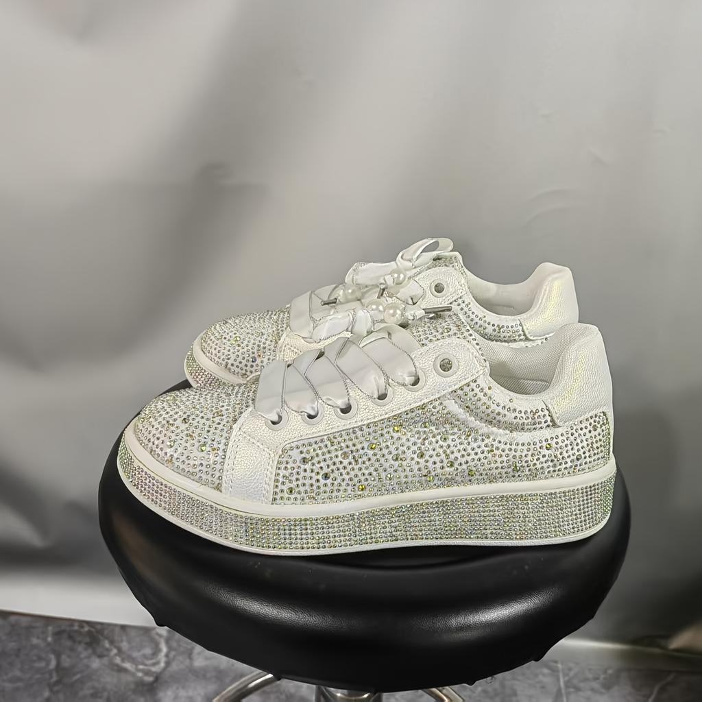 Большой размер Туфельки из страз Дыхание младенца Повседневная женская обувь 2025 Весна Новое поступление Кроссовки на шнуровке Универсальные Модные Белые кроссовки