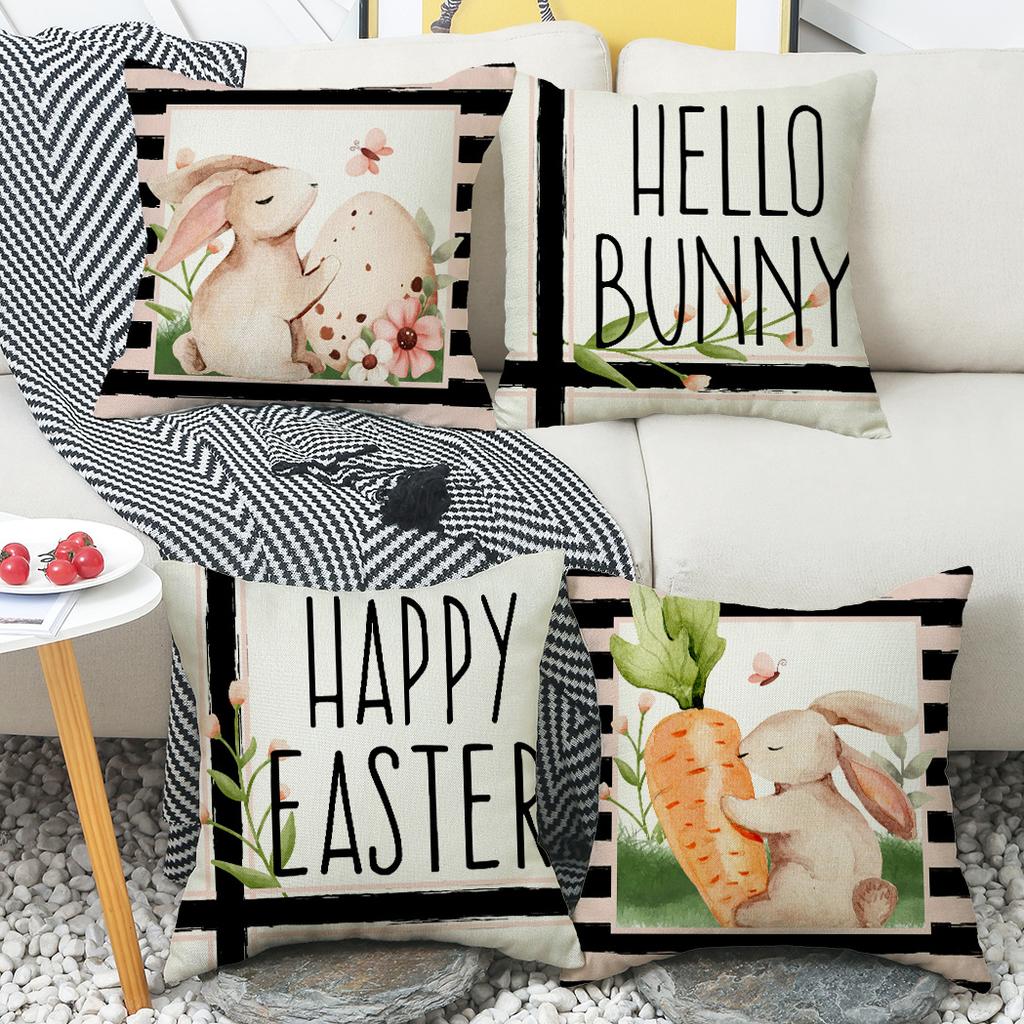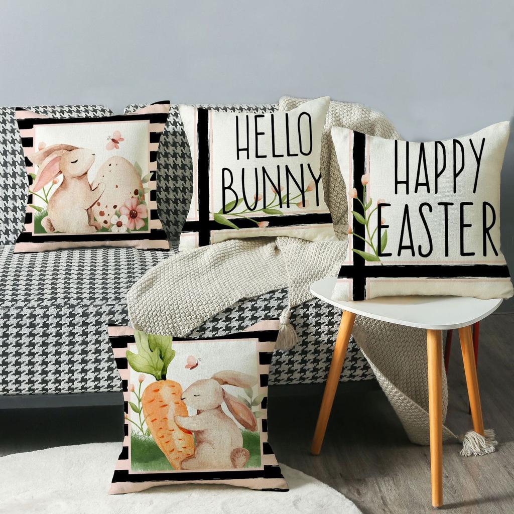 Новая пасхальная наволочка с принтом, льняная наволочка, диванная подушка, наволочка для украшения дома