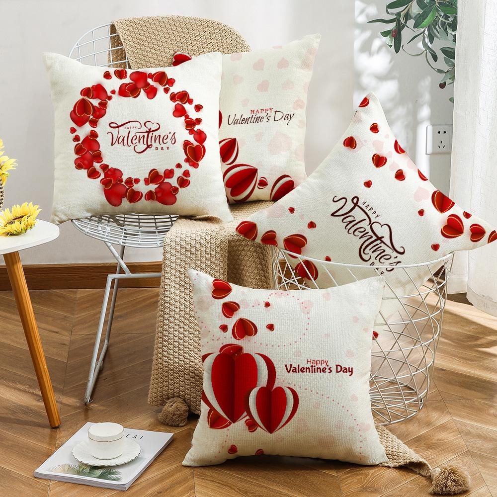 Подушка на День святого Валентина Льняная наволочка с принтом Квадратная наволочка Диванная подушка Клетчатая наволочка с надписью Love