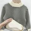 Свитер для мальчиков Утепленный Осенне-зимний Новый Модный Универсальный Полосатый Вязаный Свитер для Мальчиков Детский Топ