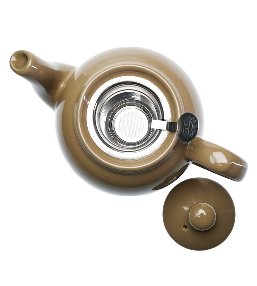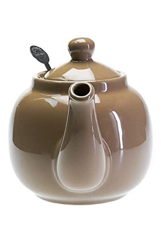 This 600ml, taupe stoneware teapot from the home of authentic British black tea, features a charming rounded shape and includes a fine-mesh stainless