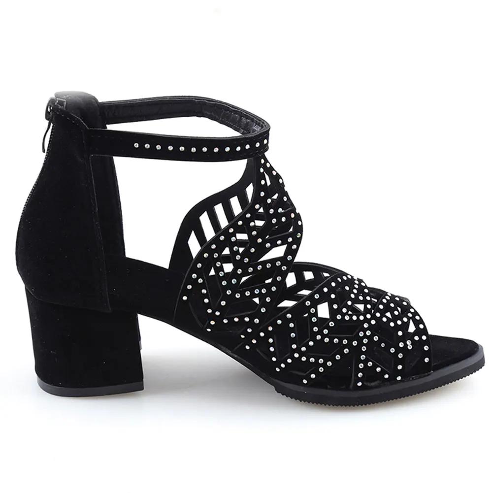 Новые стильные женские летние сандалии из искусственной кожи со стразами и молнией на толстом каблуке, обувь