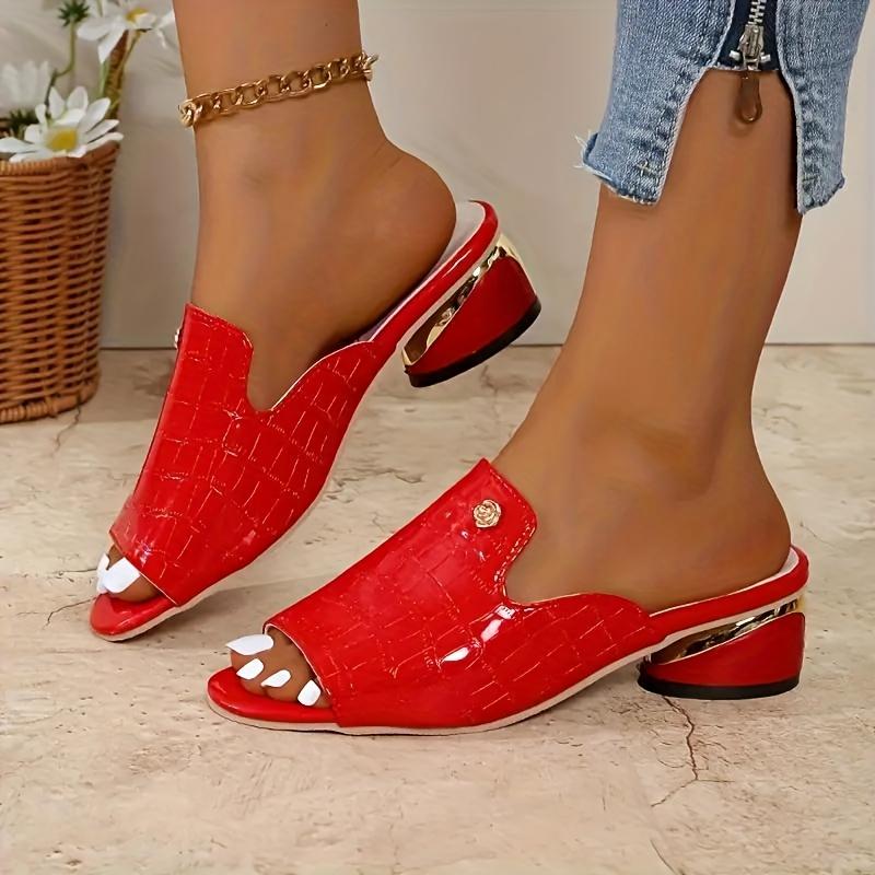 [Сандалии Крокодил] Черные сандалии-клинья с узором под крокодила | Женские туфли с открытым носком и золотистым акцентом, повседневные шлепанцы на каблуке для всех сезонов