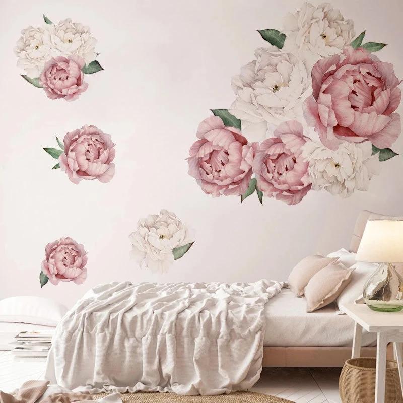Розовые Белые Акварельные Цветы Пионы Наклейки на Стену Для Детской Комнаты Гостиной Спальни Украшение Дома Наклейка на Стену Домашний Декор Цветочный