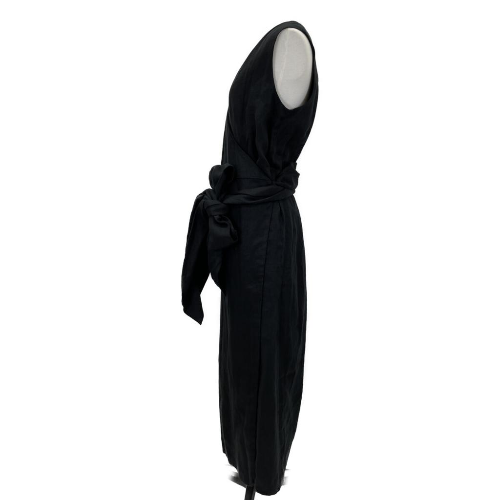 тип: Черное льняное платье с поясом и V-образным вырезом сзади