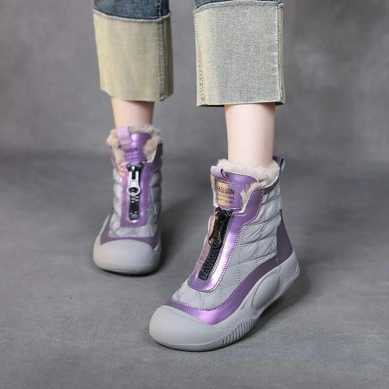 Модные зимние ботинки Johnature, женские плюшевые туфли на плоской подошве разных цветов, повседневные теплые универсальные короткие ботинки на мягкой подошве