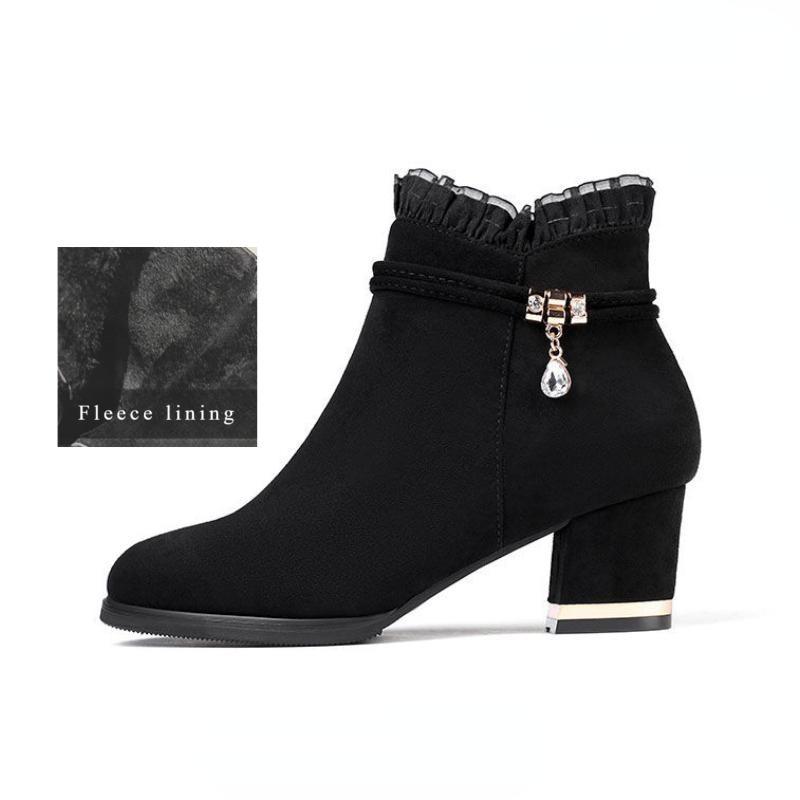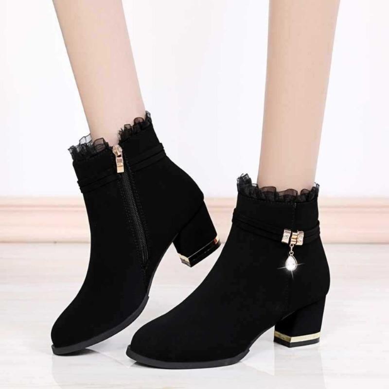 Обувь для женщин зимние корейские повседневные женские легкие теплые ботильоны кружевные туфли на высоком каблуке Botas Muje