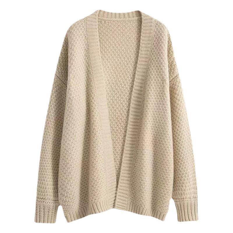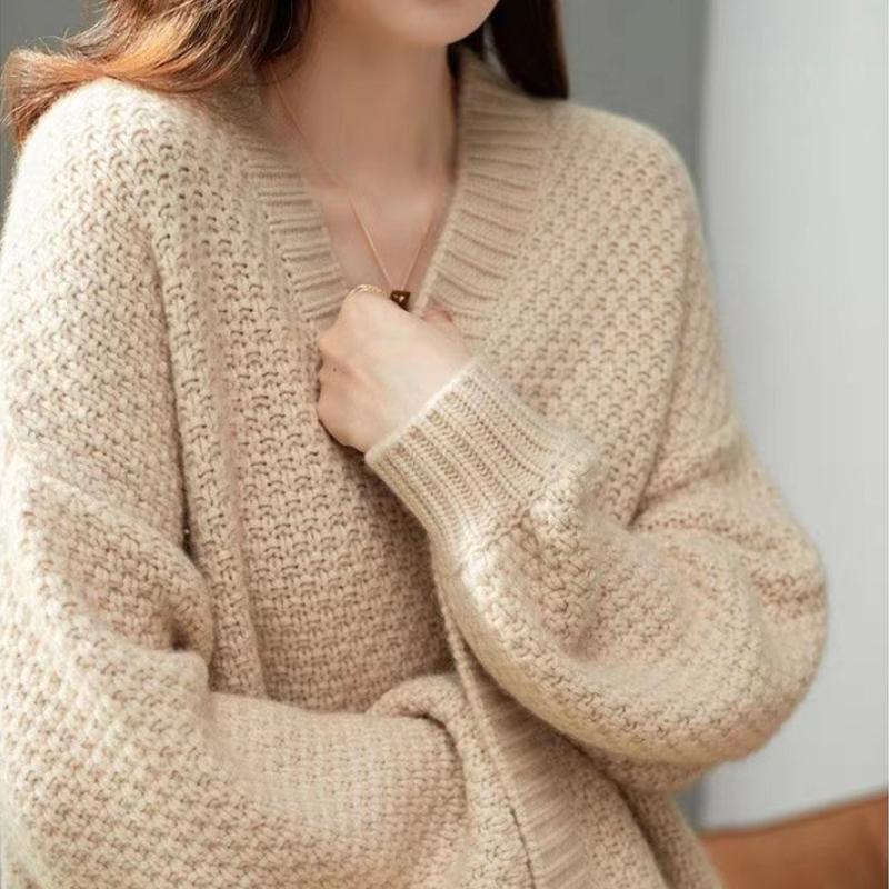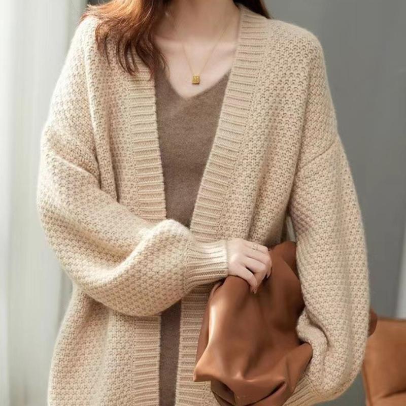Французское винтажное пальто средней длины Осень Зима Объемный свободный кардиган свитер для通勤 для женщин
