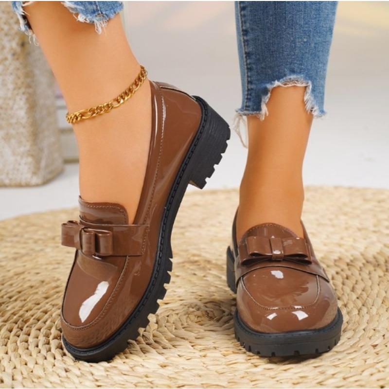 Кожаная обувь Осень Новая Уличная Повседневная Модная Лакированная Ретро Универсальная Женская Обувь Лоферы