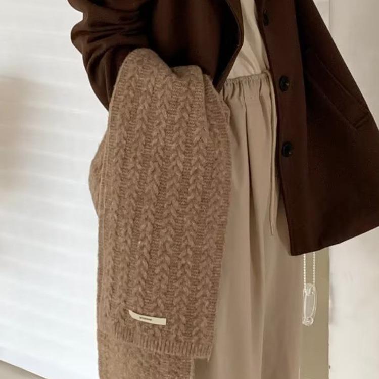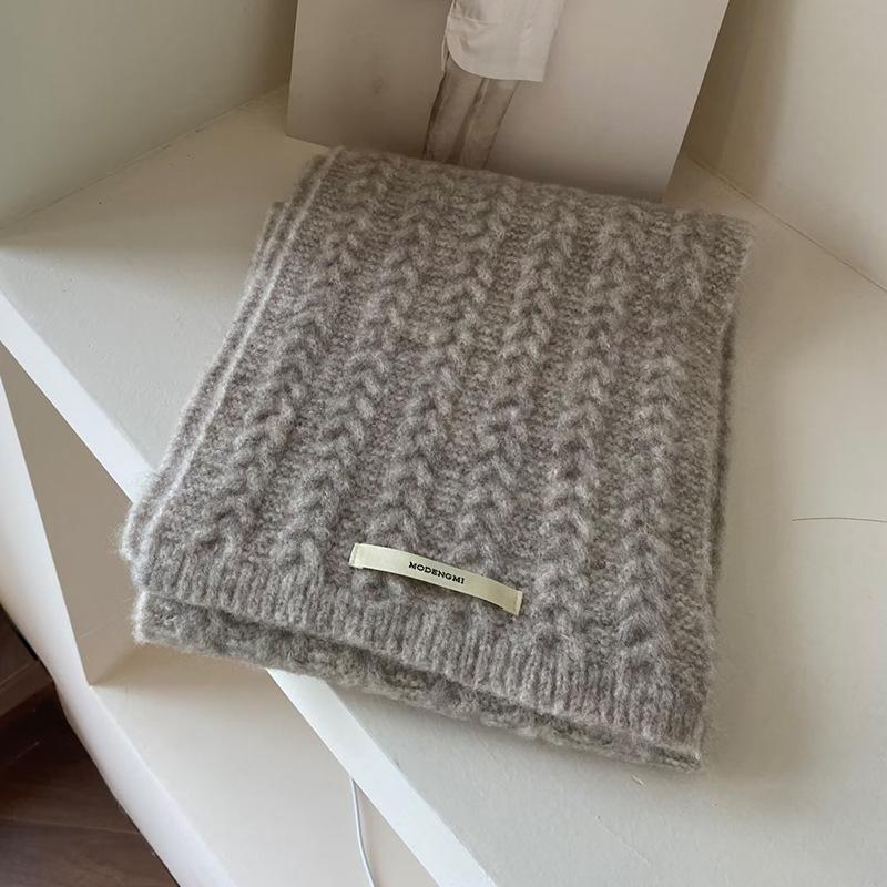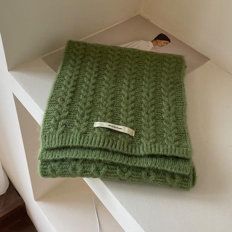 Retro Twist Long Label Knitted Wool Scarf for Women Autumn and Winter Korean Style Versatile Warm and Thickened Student Scarf Couple Style