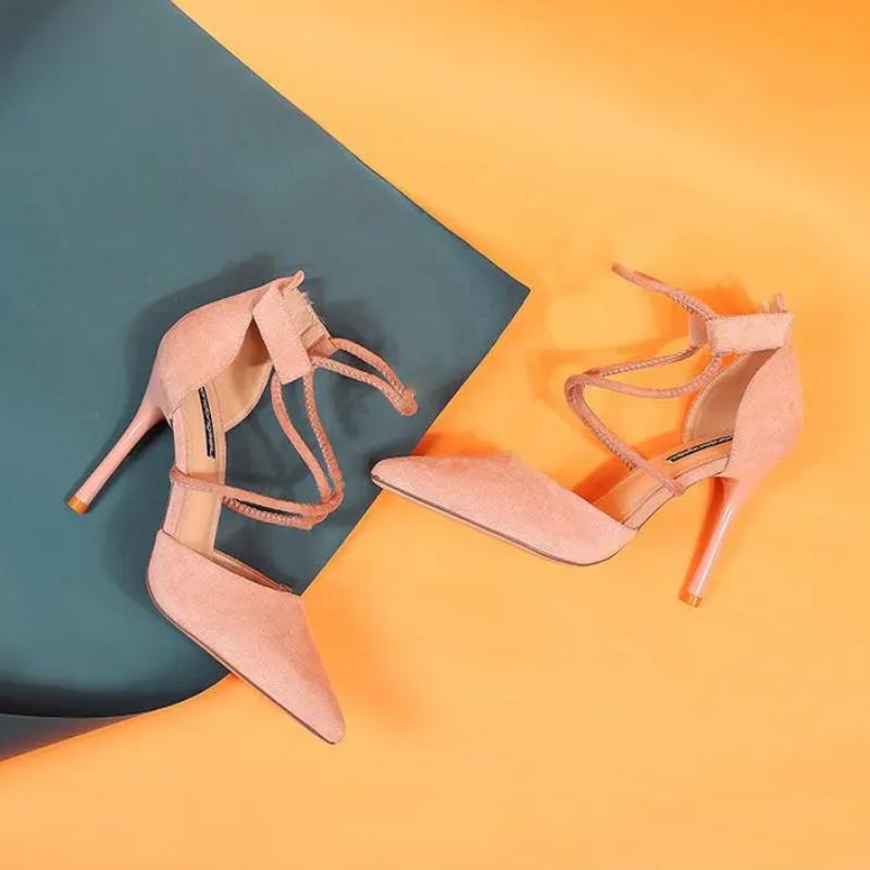 Новые римские сандалии с перекрестными ремешками, замшевая женская обувь на высоком каблуке, однотонные босоножки с пряжкой на остром каблуке, Zapatos De Mujer