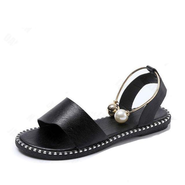 Новые летние женские жемчужные сандалии с бусинами, тапочки, женские женские сандалии на плоской подошве, шлепанцы, повседневные сандалии на плоской подошве с ремешком на пятке, обувь