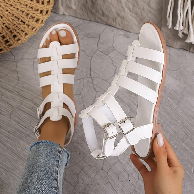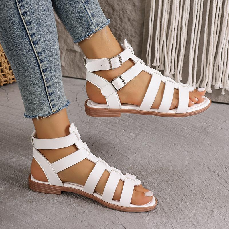 Женские сандалии летние элегантные на низком каблуке повседневные гладиаторские белые босоножки с рыбьим носком