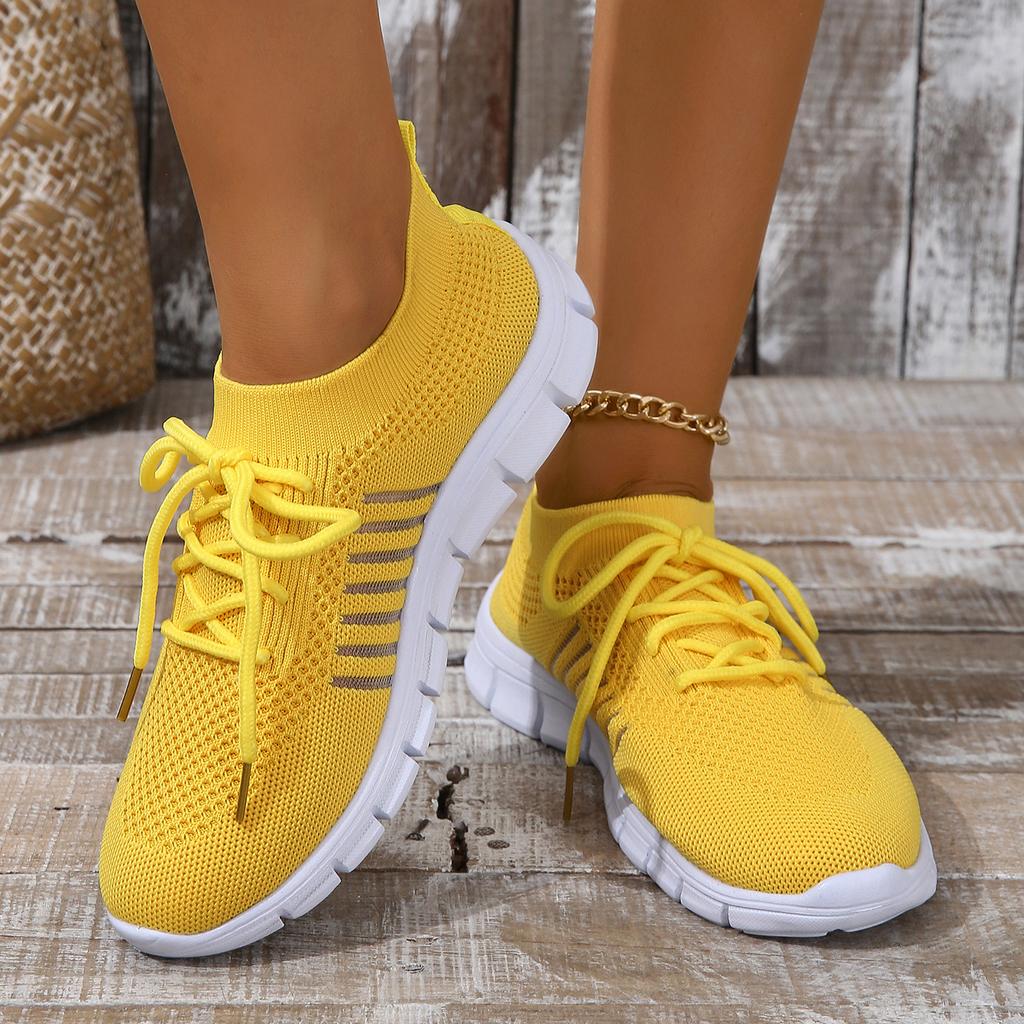 Женские сетчатые кроссовки, легкие модные кроссовки на мягкой подошве со шнуровкой для бега, летающая тканая уличная спортивная обувь