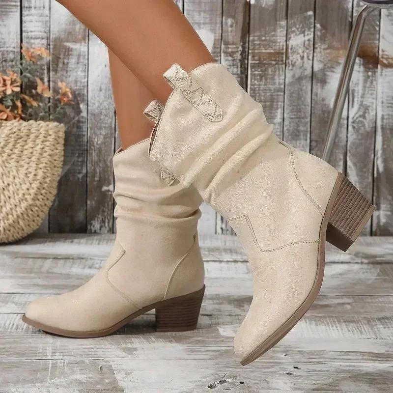 Модные короткие сапоги с острым носком, зимние женские ретро-теплые ботильоны на платформе и высоком каблуке, ковбойские сапоги для женщин Bota Feminina
