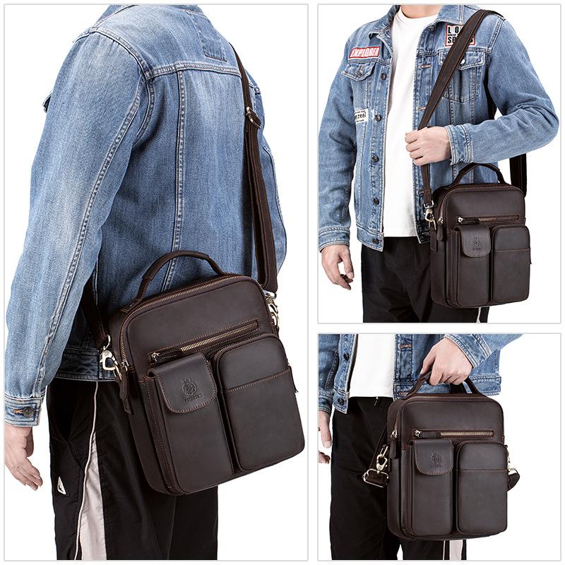 Мужская наплечная сумка из натуральной кожи, многокарманная сумка кросс-боди, сумка из коровьей кожи высшего слоя, мужская сумка