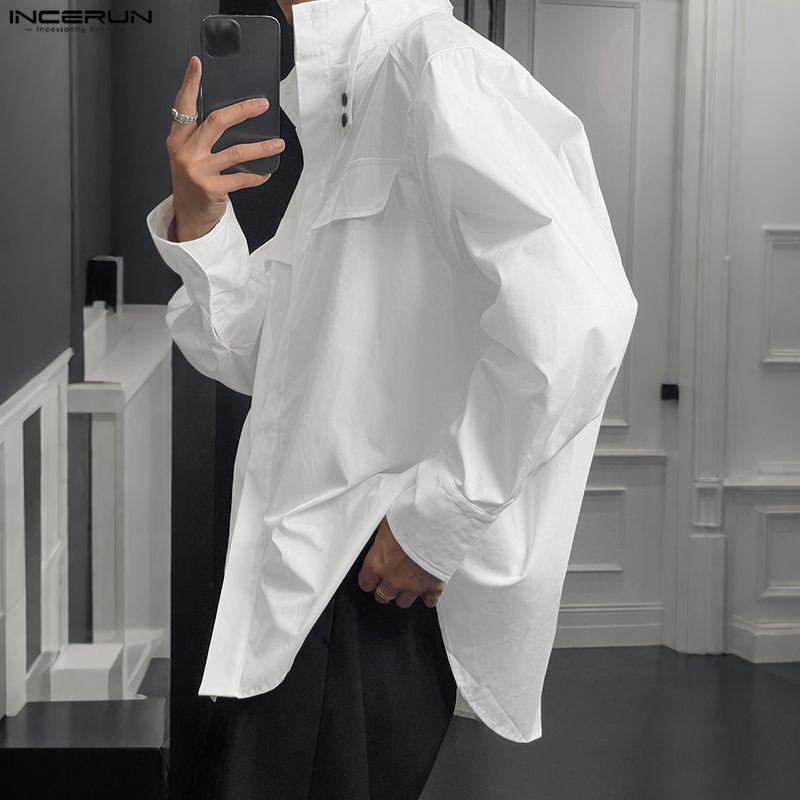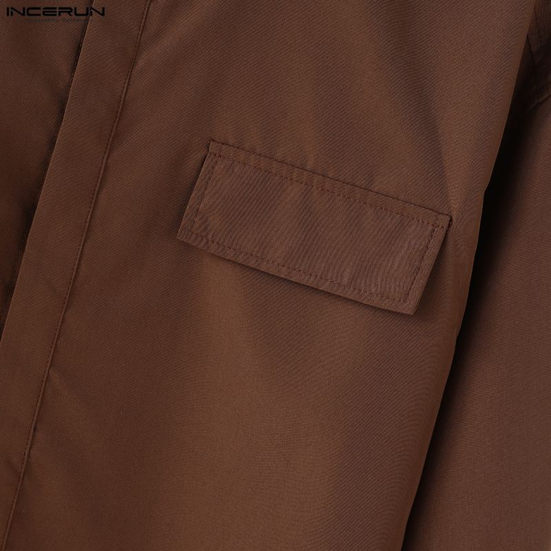 INCERUN S-5XL Мужские повседневные рубашки с воротником-стойкой, длинным рукавом и свободного кроя, карго, топы