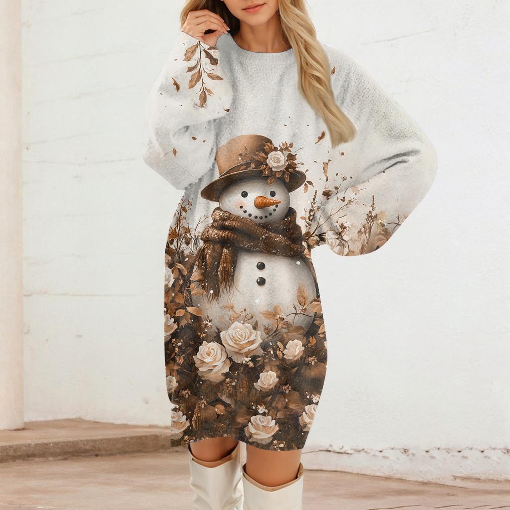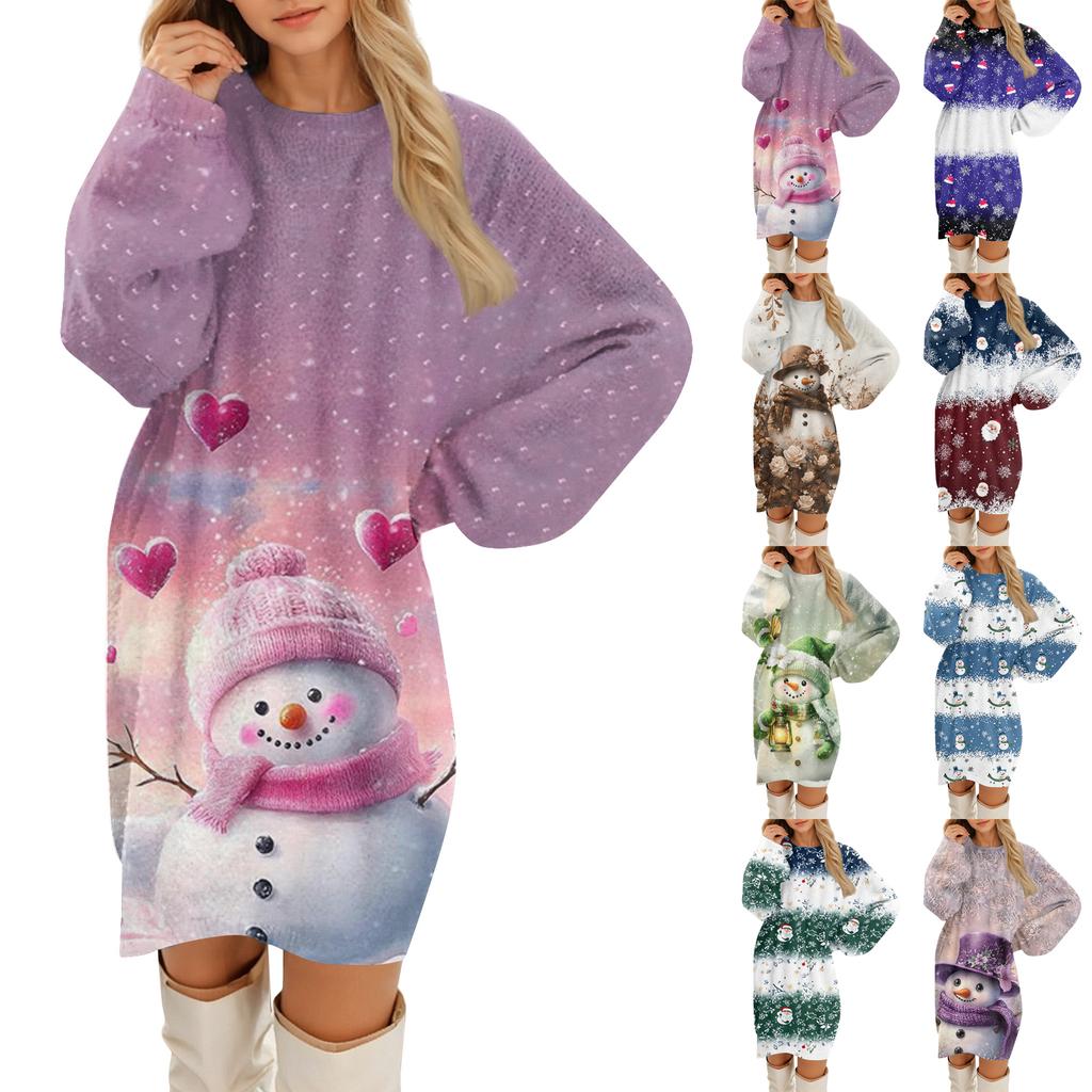 Женские повседневные плюшевые платья с круглым вырезом и длинным рукавом