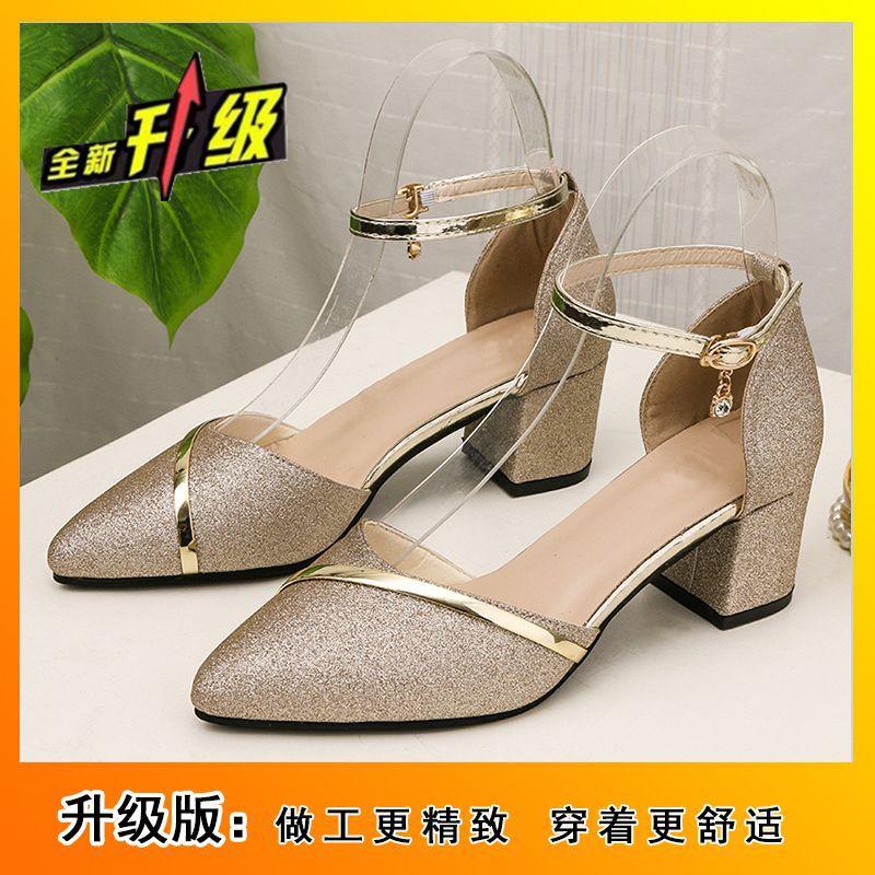 Лето 2025 новая корейская версия популярные остроносые сандалии на толстом каблуке с ремешком на подъеме женская мода остроносые сандалии женские на пуговице