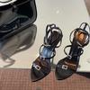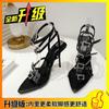 Haute couture 2025 spring and summer new temperament rhinestone square buckle super high heel sandals women's sexy side space thin heel open-toed w