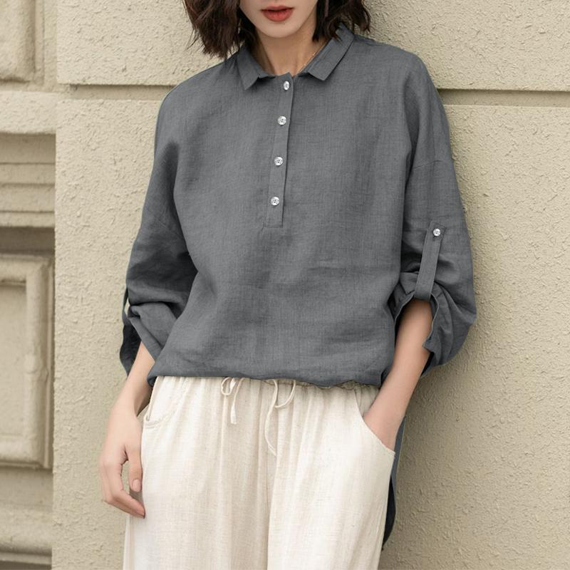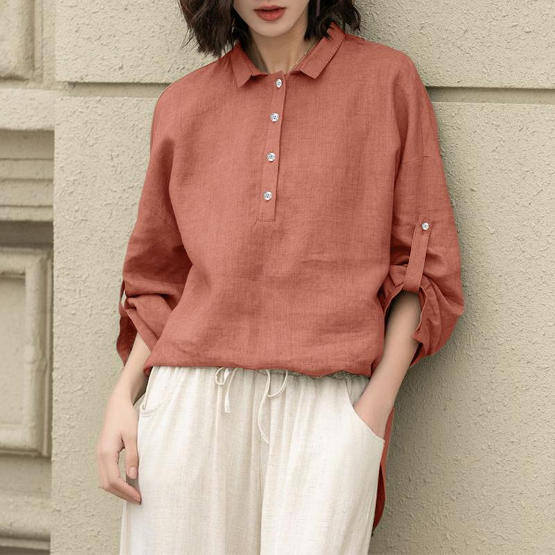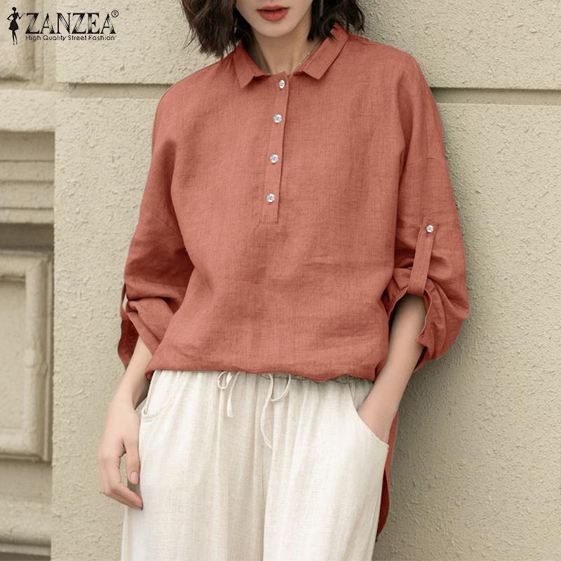 ZANZEA Женская блузка свободного кроя с отложным воротником и рукавами 3/4, однотонная