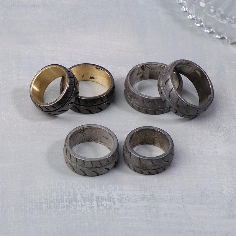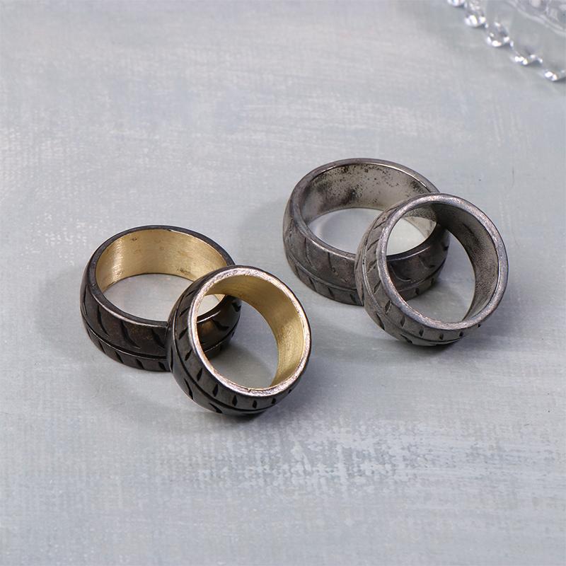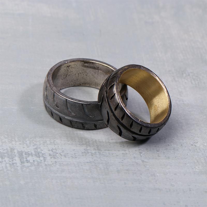 Для любителей гонок Металлическое кольцо в виде гоночной шины ручной работы с рисунком протектора Свадебные украшения для гонщика