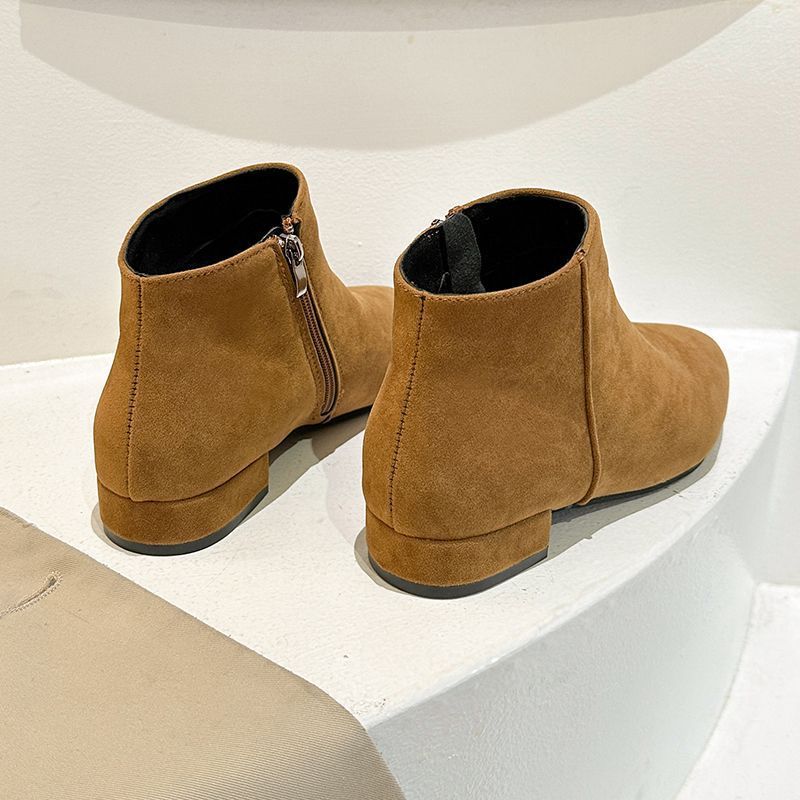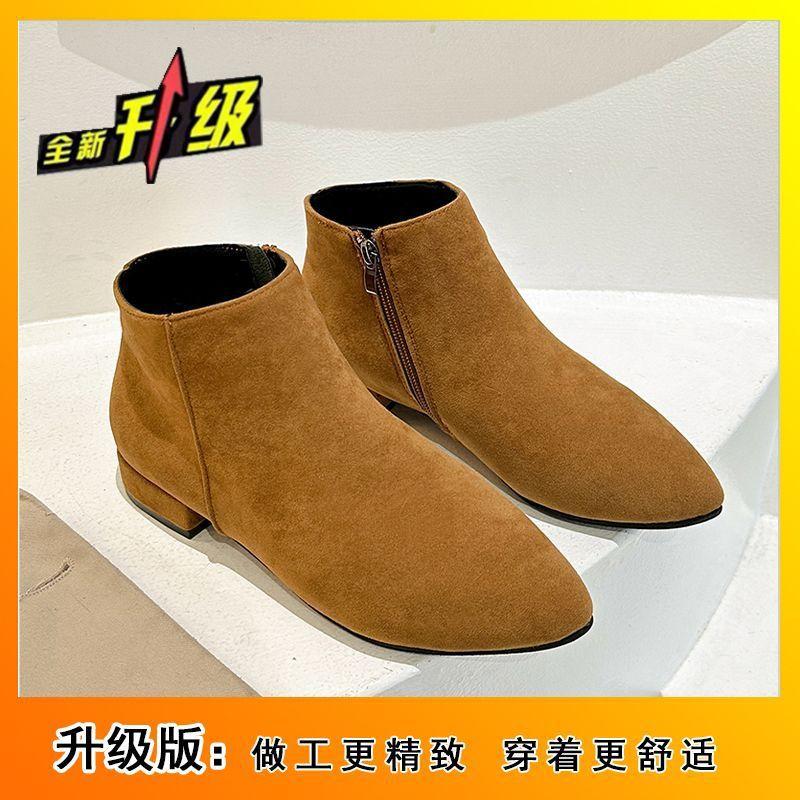 Низкий каблук, боковая молния, короткая голенище, универсальные и лаконичные ботинки, матовые короткие ботинки, женские, острый носок, толстый каблук, флис, удобные, новые модели осени 2025 года