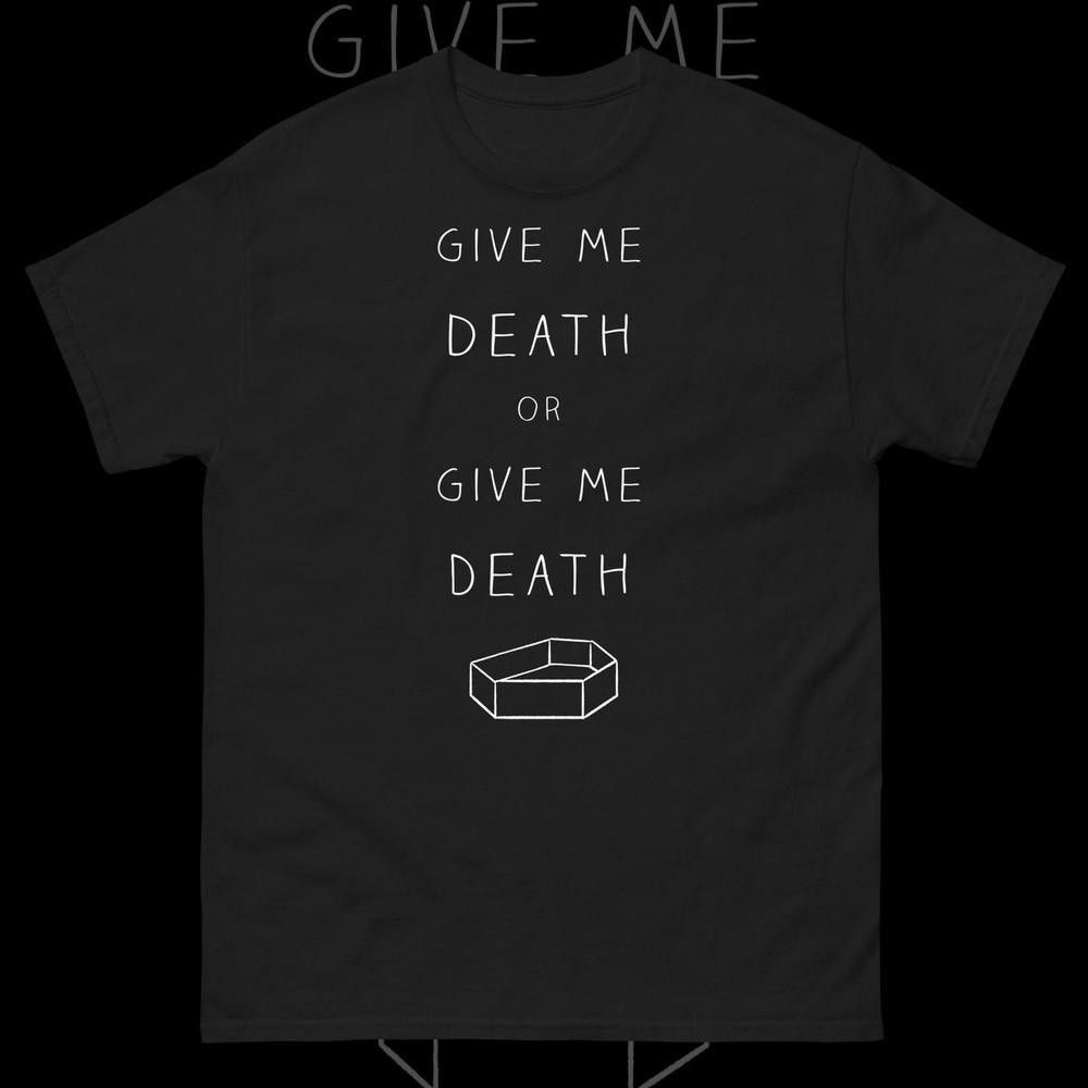 Футболка "Give Me Death" в готическом стиле, ню-готика, пастельные тона, софт-гранж, саркастический гроб, унисекс.