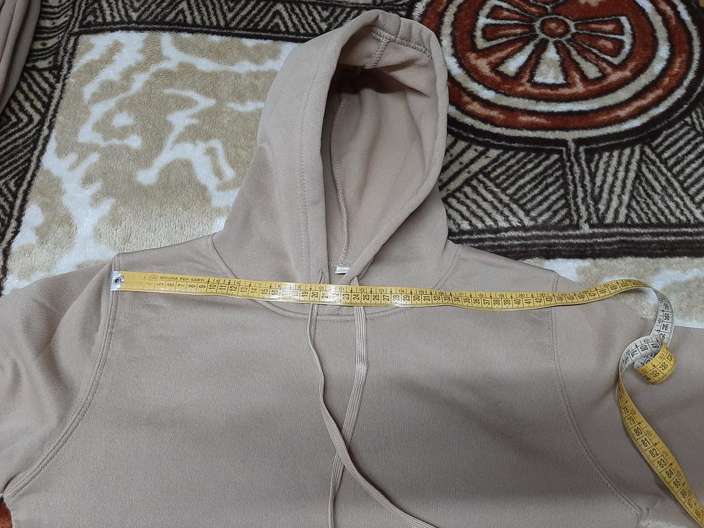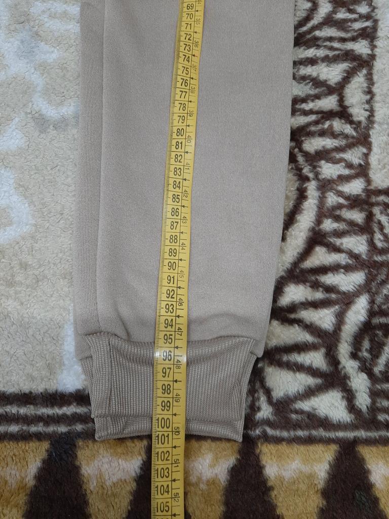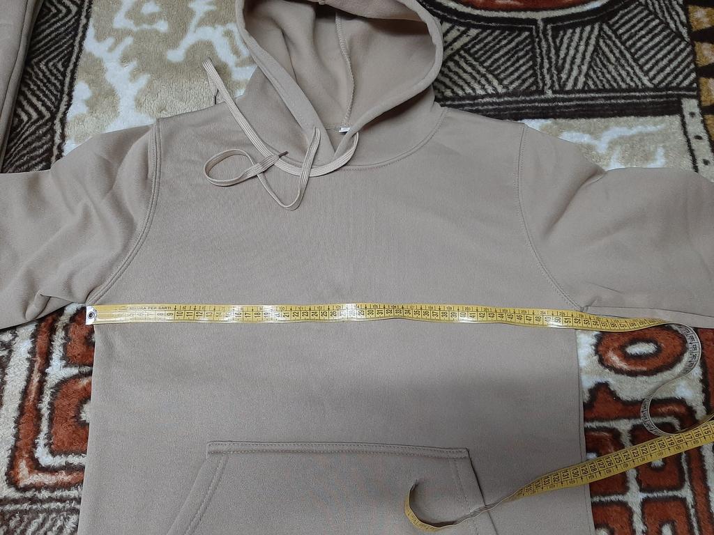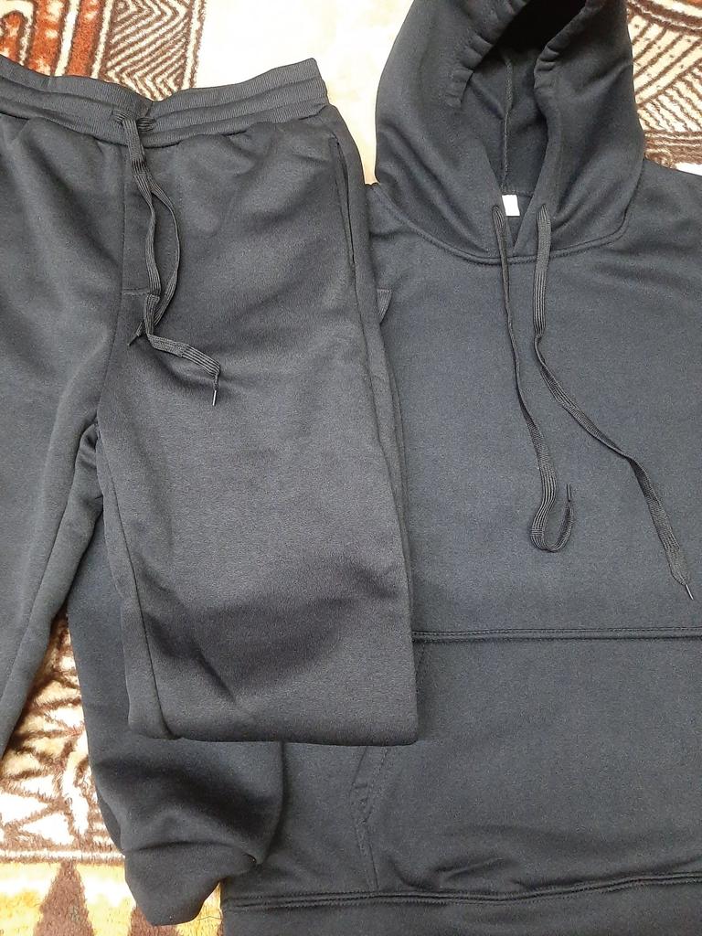 L на 44 размер толстовка а штаны на 40,короткие и узкие. МАТЕРИАЛ синтетика но плотная норм.Штаны продали ,толстовка лежит так как мала.