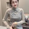 Весенний дизайн, стойка-воротник, футболка тай-дай, новая футболка с длинным рукавом, женская, приталенная, топ в новом китайском стиле