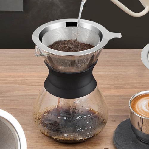 Безбумажный кофейный фильтр-дриппер из нержавеющей стали, Конический, Нержавеющая сталь, Многоразовый сетчатый фильтр, Стильный кофейный дриппер для ручного заваривания кофе