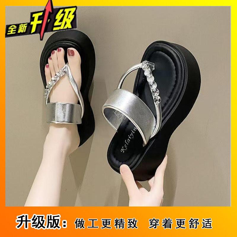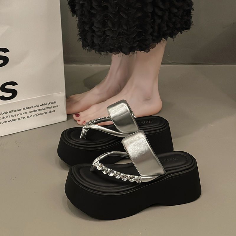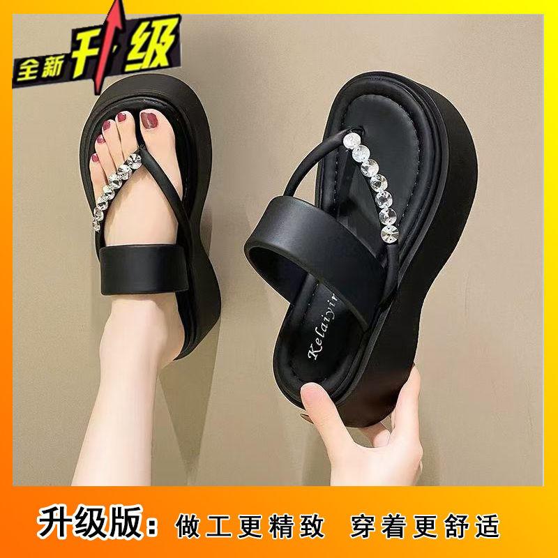 Женские шлепанцы на толстой подошве с горкой и стразами, лето 2025, новая коллекция, сандалии в стиле Сяосянфэн, универсальные, пляжная обувь для морского побережья