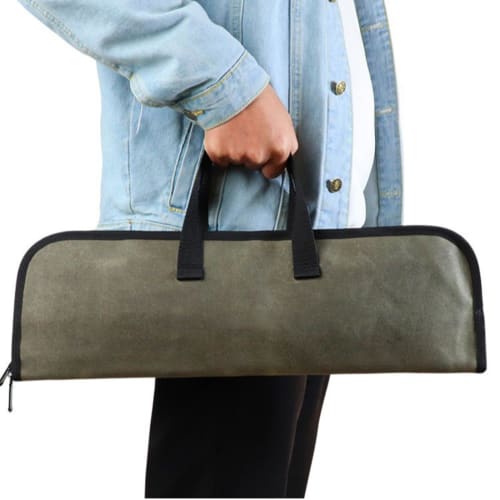 Сумка для хранения ножа шеф-повара, Холст с масляной восковой пропиткой, На молнии, Портативная, Толстая, Водонепроницаемая, Легкая, Зеленая
