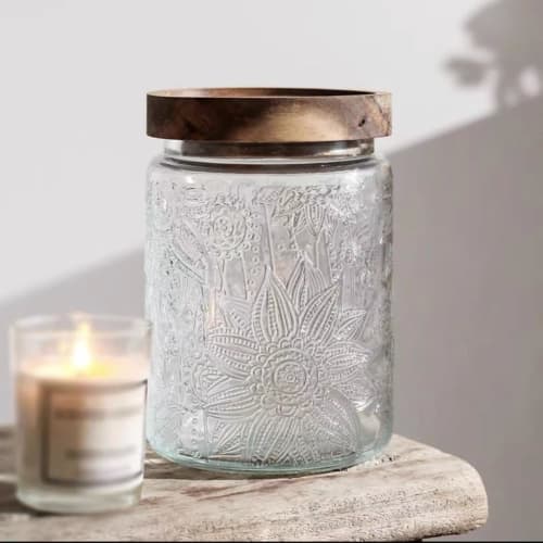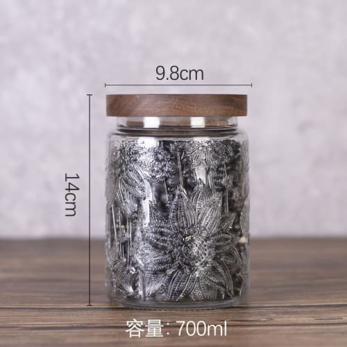 Ретро стеклянная банка с крышкой, милый контейнер для хранения (Дизайн подсолнуха, 700 мл)