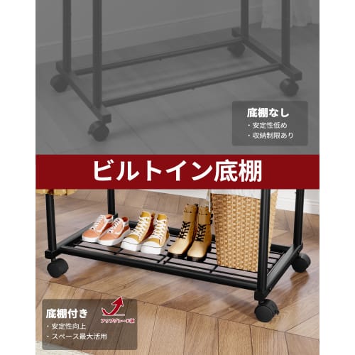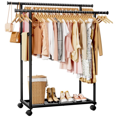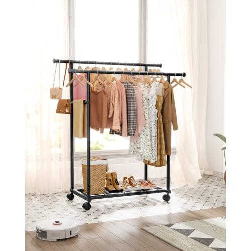 Вешалка для одежды Sakugi, Тонкая и стильная металлическая двойная штанга на колесиках и с полками, Идеально подходит для организации шкафа и хранения одежды, 98 см в ширину x 42