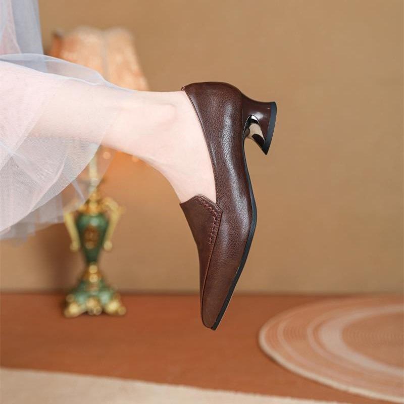 Новые туфли-лодочки на среднем каблуке, женственные, с острым носком, на толстом каблуке, не утомляют ноги, удобная женская обувь для четырех сезонов
