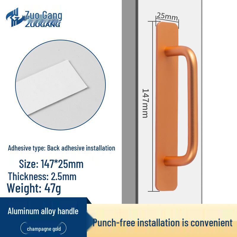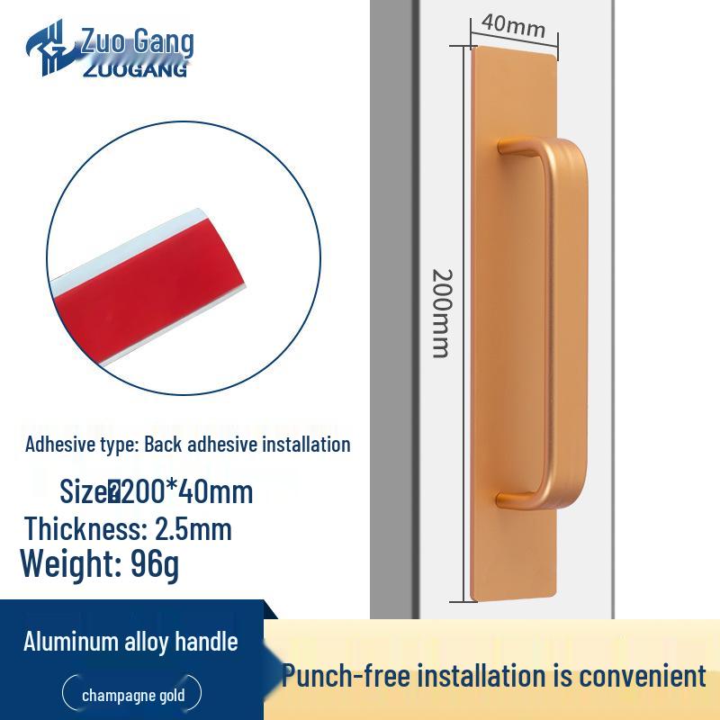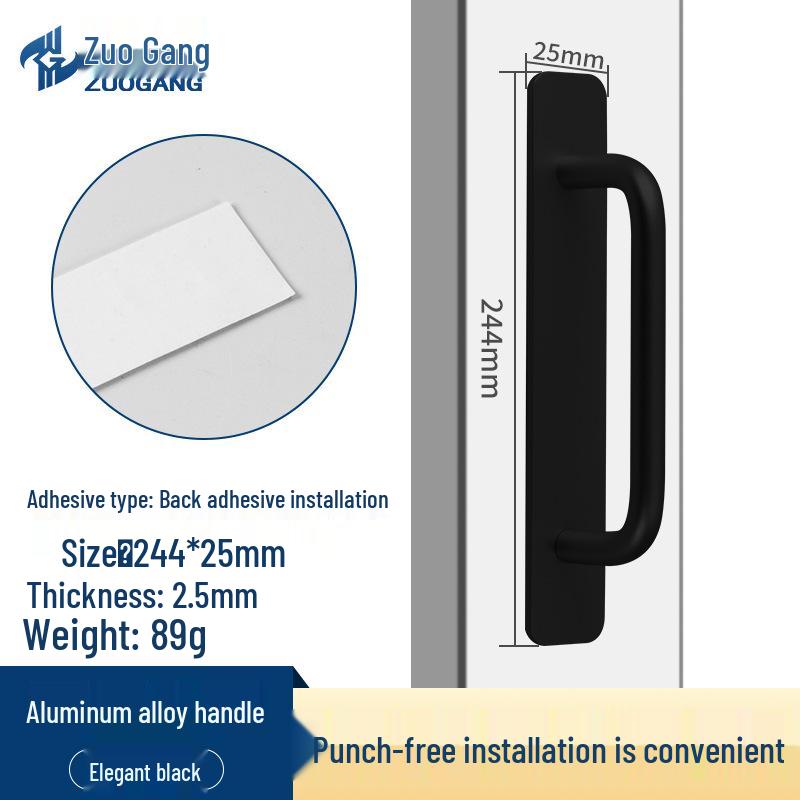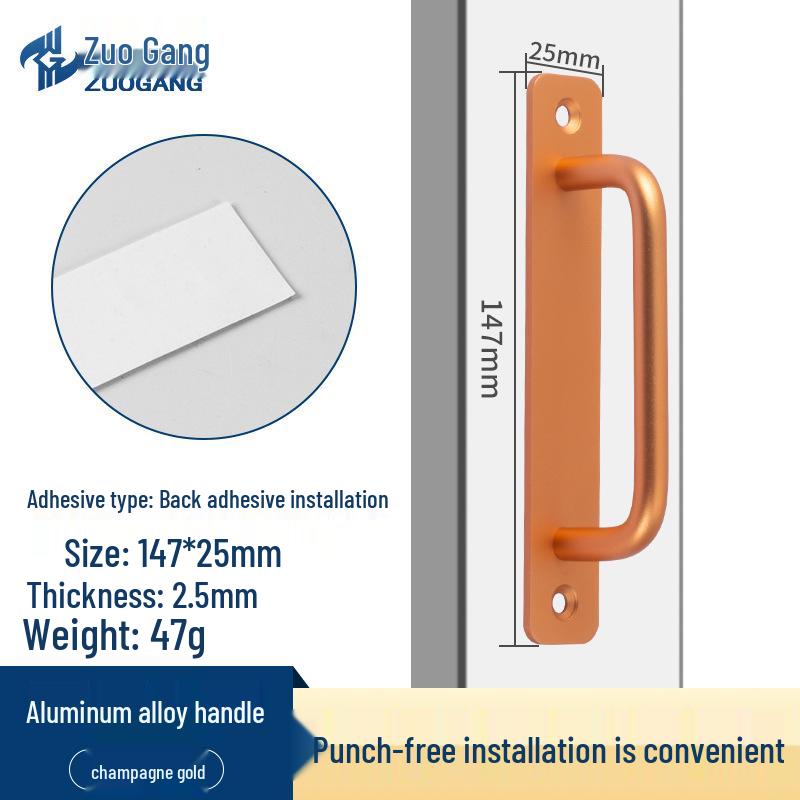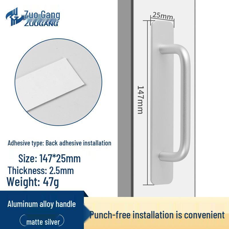 Стальная самоклеящаяся ручка для раздвижных дверей из алюминиевого сплава для кухонных шкафов и балконов