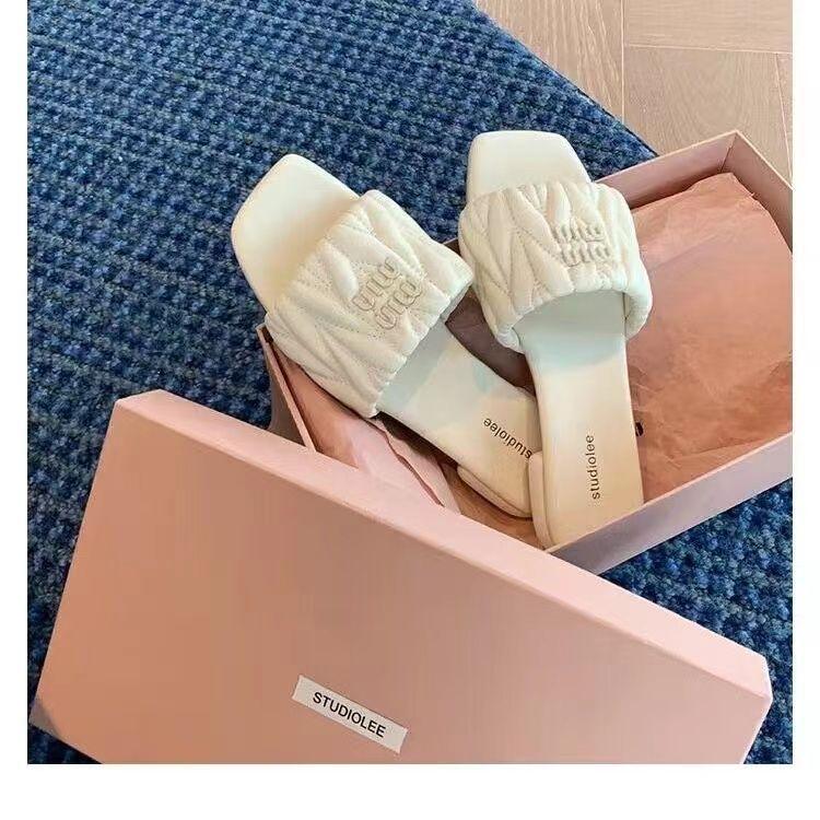 Весна и лето 2025 года, корейская версия классных тапочек, женская новая плоская подошва, открытая пляжная одежда, сказочный ветер, квадратная головка, односложные тапочки