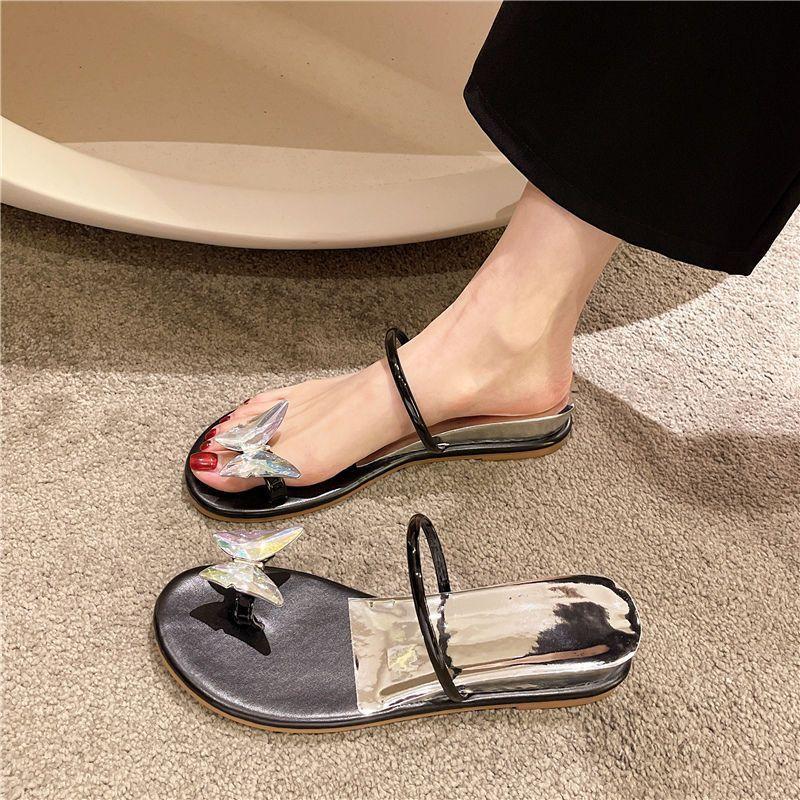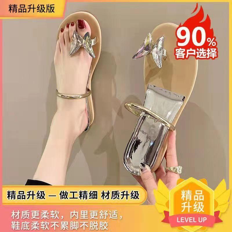 Интернет знаменитость фея ветер прохладные тапочки женский носок внутренняя часть увеличение плоский низ бабочка стразы пряжка рукав носок низкий каблук наружная одежда a word