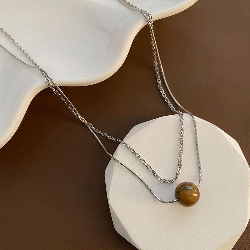 Модель04-N10 Ожерелье из титановой стали с двойным слоем и тигровым глазом