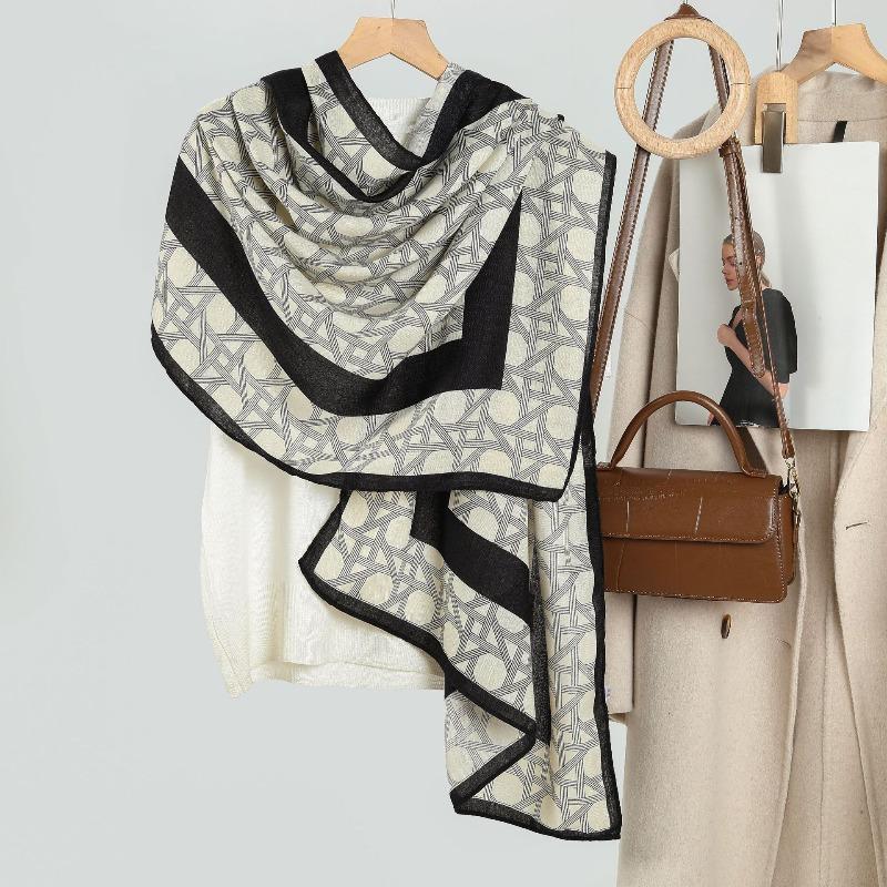 Женский простой шелковый шарф с принтом ротанговой сетки, простой и универсальный шарф для фото, осенне-зимний холодостойкий и теплый шарф