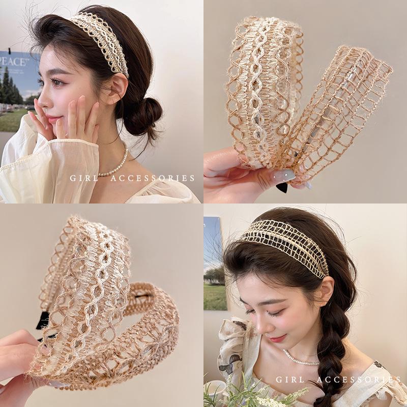 Богемная льняная вязаная повязка на голову: Супер фея полый вязаный зажим для волос и галстук