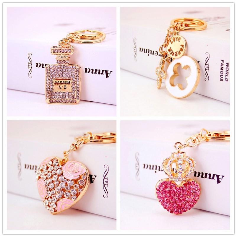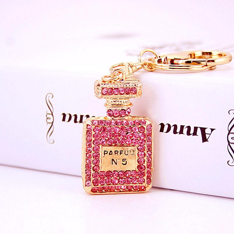 Элегантный брелок в виде четырехлистного клевера, инкрустированный бриллиантами: Шарм-подвеска для сумки в виде флакона духов для женщин