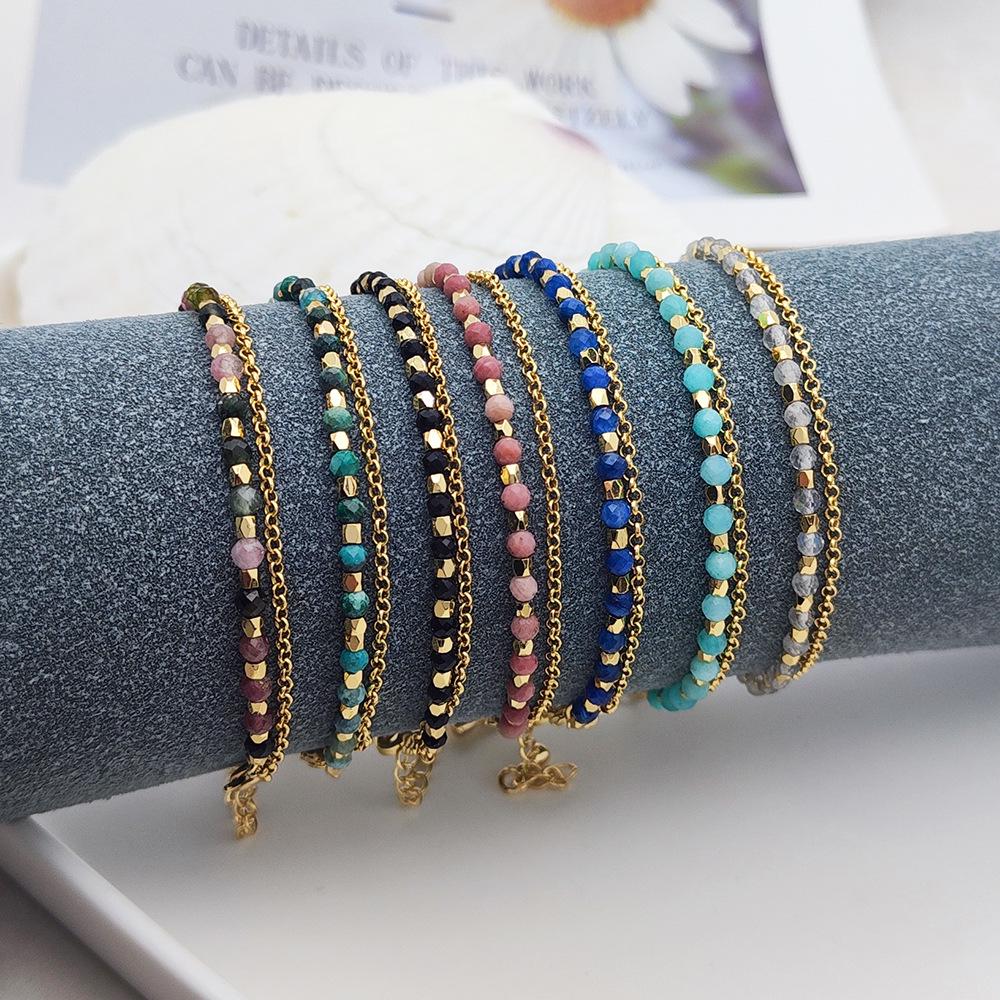 Женский богемный многослойный браслет из натурального турмалина с бусинами
