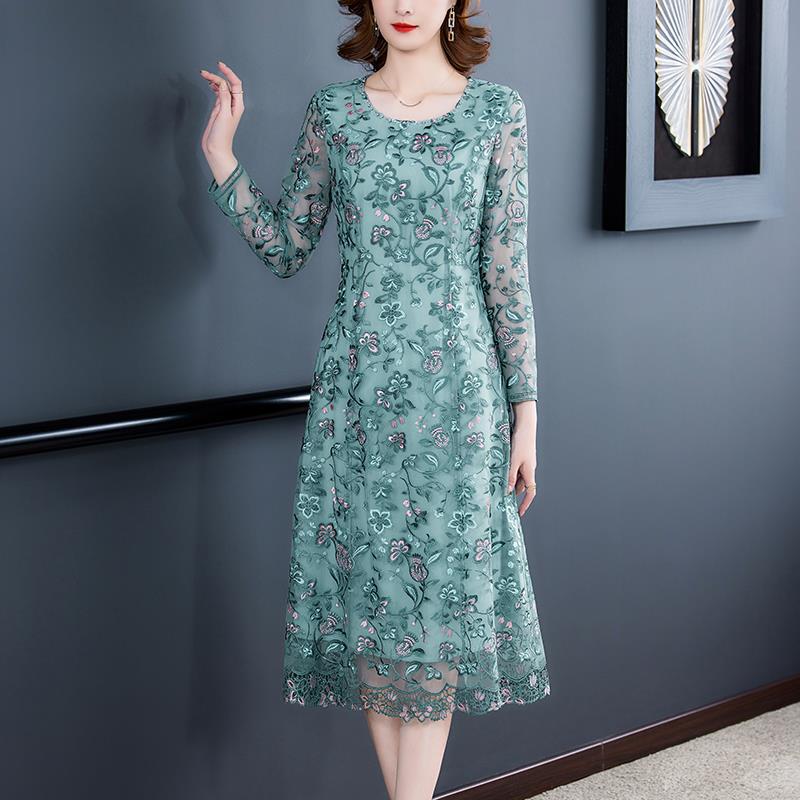 Осень 2025 г.: Элегантное кружевное платье с вышивкой и круглым вырезом — купить товар онлайн с бесплатной доставкой до всему миру!